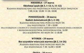 Zaczynamy rekolekcje w IV Niedzielę Wielkiego Postu 27.03.2022 r. + ogłoszenia duszpasterskie