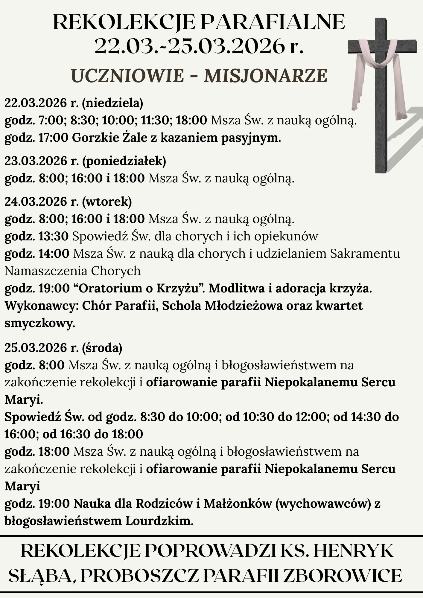 REKOLEKCJE PARAFIALNE 22.03.-25.03.2026 r. UCZNIOWIE – MISJONARZE Ogłoszenia Parafia2026-03-21T20:02:49+01:0021 marca, 2026|Share This Story, Choose Your Platform!FacebookXRedditLinkedInWhatsAppTumblrPinterestVkEmail