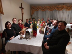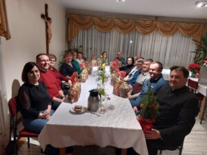 Z racji wspomnienia św. Cecylii, patronki muzyki kościelnej, muzyków, śpiewaków, organistów i chórzystów, dnia 05 grudnia 2025 r., w piątek, po wieczornej Mszy Świętej na plebanii odbyło się wspólne spotkanie członków naszego chóru parafialnego na którym obecny był ksiądz proboszcz Andrzej oraz opiekun chóru ksiądz Mariusz. Podczas spotkania między innymi podziękowano chórzystom oraz p. organiście Pawłowi Podrazie za bardzo oddaną służbę liturgiczną. O chórzystach nie zapomniał także św. Mikołaj, biskup a to z racji przypadającego na następny dzień liturgicznego wspomnienia świętego z Miry.
